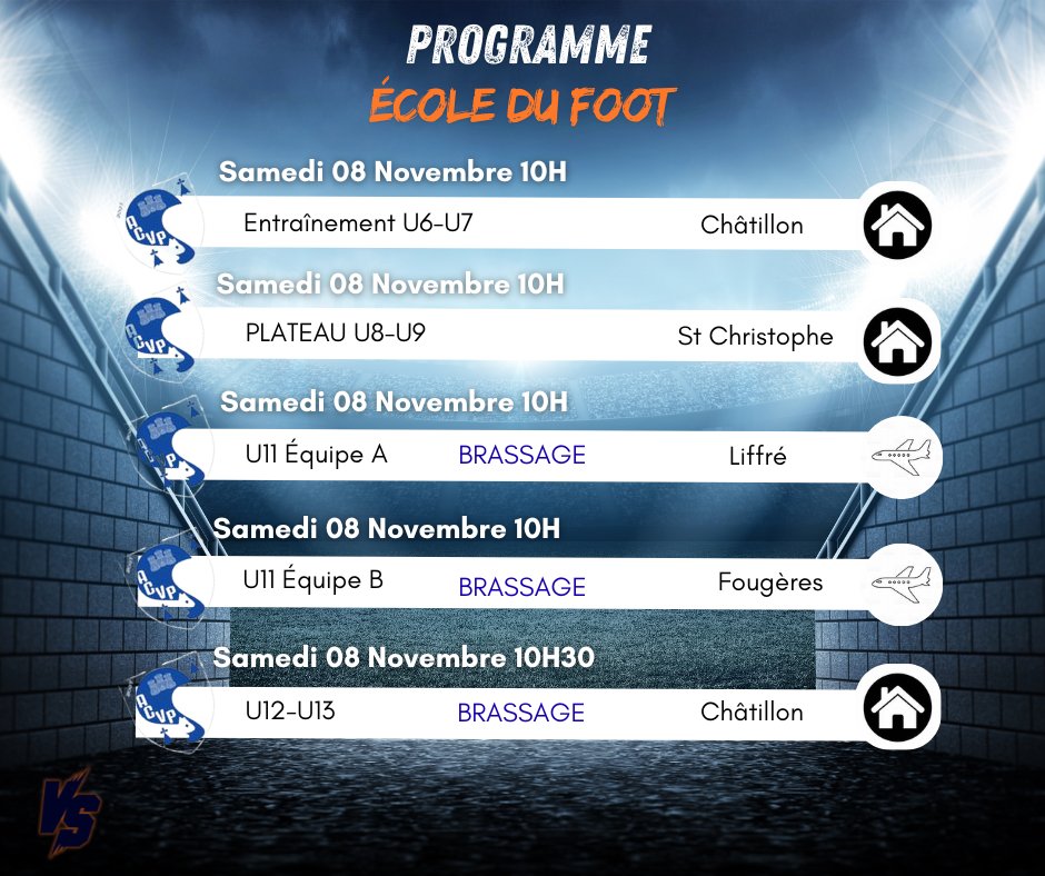 Programme École du Foot Jeunes du samedi 8 novembre 2025.