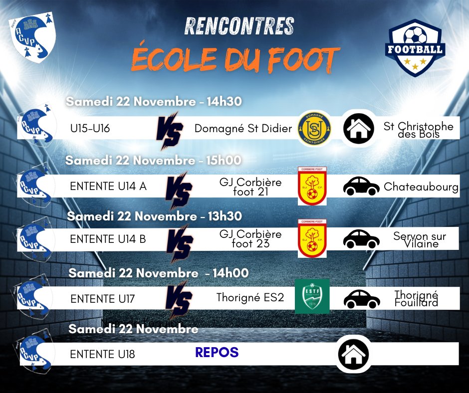 Rencontres École du foot : samedi 22 novembre 2025.