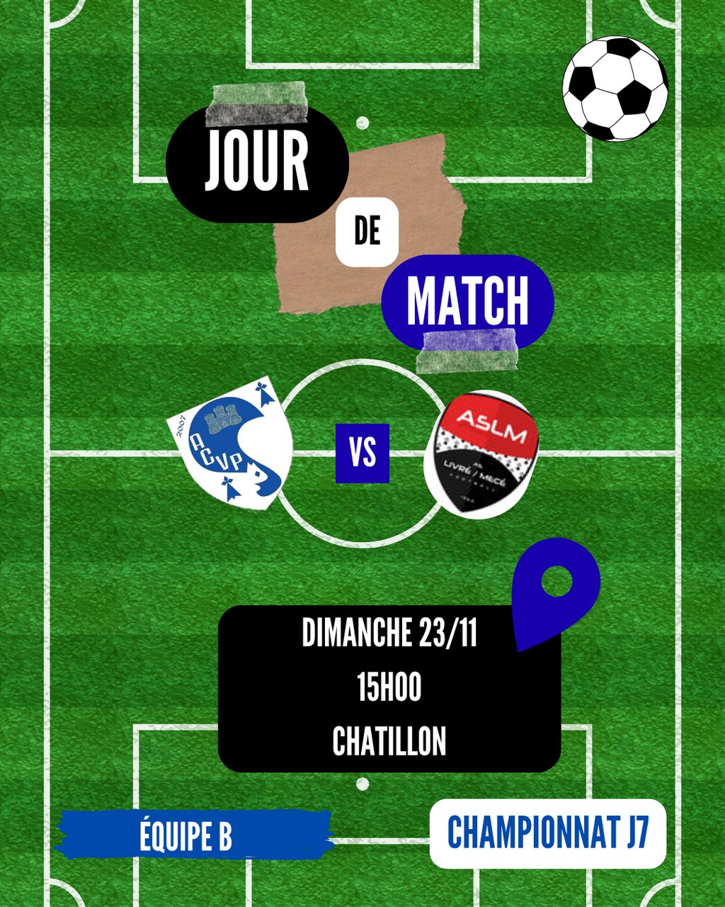 ACVP vs ASLM , le dimanche 23 novembre 2025 à 15h00, à Châtillon en Vendelais.
