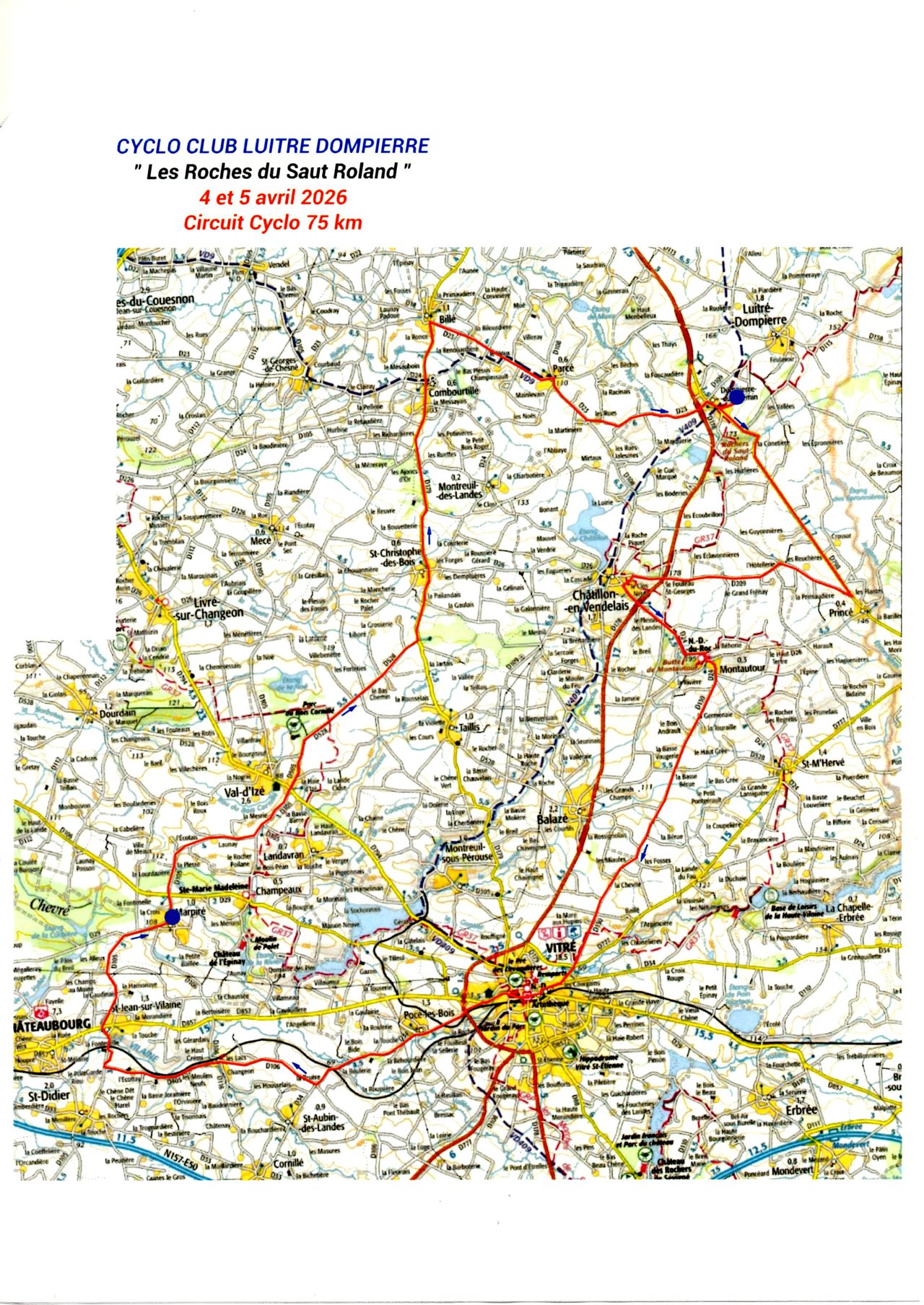 Comme tous les ans, le Cyclo Club Luitré-Dompierre organise sa randonnée VTT, ouverte à tous, sur la région de Luitré-Dompierre. Cette année, un circuit cyclotourisme (75 km) est mis en place et emprunte les voies communales. Le circuit traverse la commune de Saint-Christophe des Bois.
